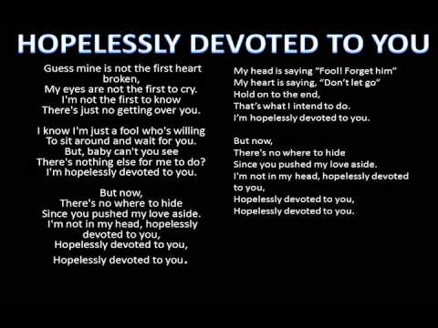 Hopelessly Devoted To You - Olivia Newton-John (KARAOKE VERSION) - Glee Hopelessly Devoted To You Karaoke - KaraokeHits #KaraokeCovers #KaraokeVersions "Hopelessly Devoted to You" is a song written by John Farrar. It was originally performed by Olivia ...